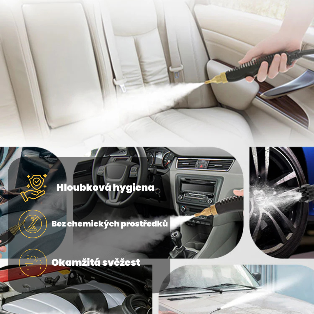 Snadno vyčistěte každý kout svého auta bezpečně a bez chemikálií díky HygiaHome™ Parnímu čističi, pro zdravý a dokonale čistý interiér.